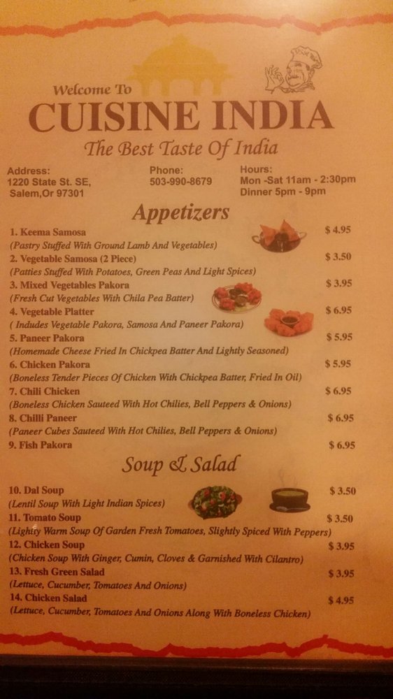 Introducing Cuisine India, a delightful fusion of authentic Indian flavors and a warm atmosphere located in Salem, OR. They offer a diverse menu that includes an array of appetizers, lamb entrees, and tandoori specialties, perfect for both casual dining and special occasions.